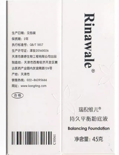根据,2015年12月15日国家食品药品监督管理总局发布的《国家食品药品监督管理总局关于化妆品生产许可有关事项的公告(2015年 第265号)》(以下简称《公告》),我公司于2016年12月2日将《全国工业产品生产许可证》和《卫生许可证》更换为《化妆品生产许可证》,编号为:津妆20160026。