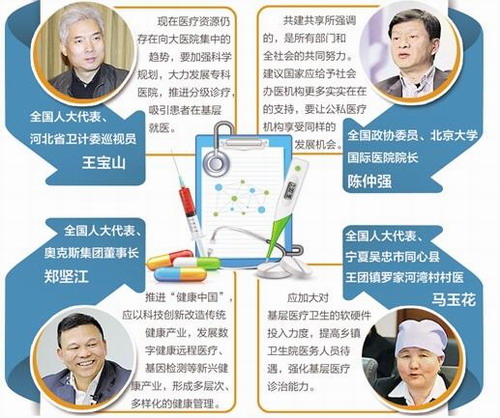 全国人大代表、河北省卫计委巡视员王宝山提出,现在医疗资源仍存在向大医院集中的趋势,要加强科学规划,大力发展专科医院,推进分级诊疗,吸引患者在基层就医。同时,通过组建医联体、发挥医保和价格的政策引导作用,畅通双向转诊渠道。