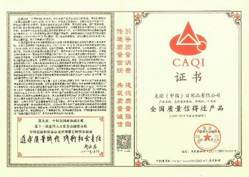 近日,在中国质量检验协会组织的2017年“3·15”活动中,克缇(中国)荣获“全国产品和服务质量诚信示范企业”和“全国质量信得过产品”双项荣誉称号。