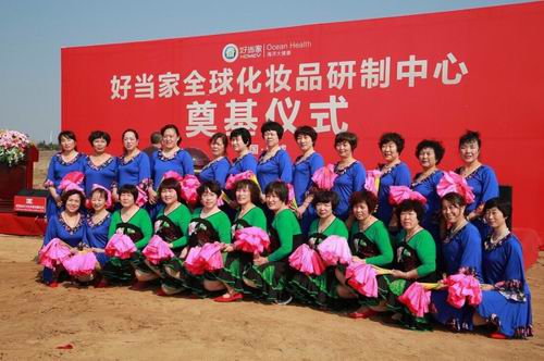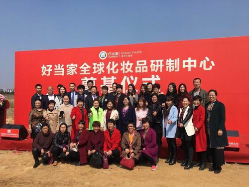 ▲好当家海洋大健康总经理谢桂冬先生与经销商代表合影