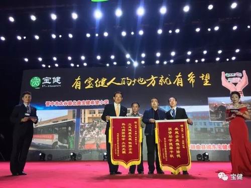宝健今年21岁了,这21年里宝健人心怀天下,尽自己最大的努力做公益去回报祖国,共捐建了100所希望小学,累计帮助12万名孩子获得了公平受教育的机会。山西两所希望小学校长也来到了大会现场,满怀感恩,为宝健人送上锦旗,表达谢意。