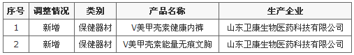 2017年3月22日,商务部直销行业管理信息系统网站公示山东卫康生物医药科技有限公司调整直销产品信息。卫康此次新增保健器材2款,详细信息如下: