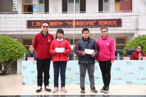 活动现场,中脉公益基金会的领导和嘉宾为优秀学生颁发了奖状,并与志愿者一同为学生们分发了书包以及学习用品,同时为两位贫困学生每人捐赠1000元助学金,帮助他们顺利完成学业。