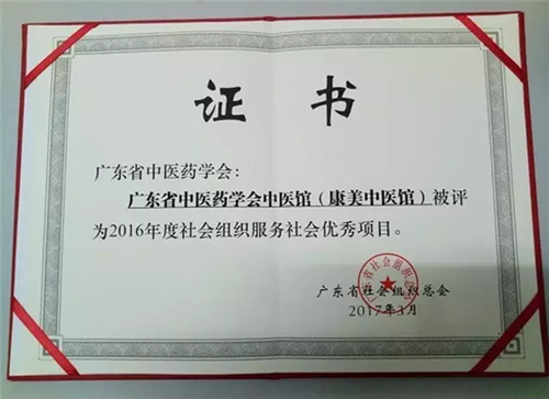 近日,“广东省社会组织总会第三届第二次会员大会暨评选表彰大会”在广州召开。会上,康美中医馆(广东省中医药学会中医馆)项目被评为“2016年度社会组织服务社会优秀项目”。
