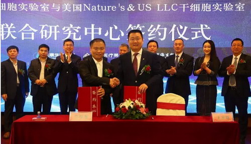 卫康生物集团董事长王宗继与广东万海细胞生物科技有限公司董事长、卫康干细胞实验室科研带头人李相鲁博士签署合作协议