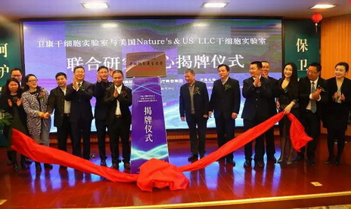卫康生物集团董事长王宗继携集团高管与广东万海细胞生物科技有限公司董事长、卫康干细胞实验室科研带头人李相鲁博士带领的专家团队共同为《卫康干细胞实验室》揭牌