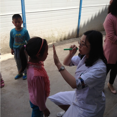 医生为当地儿童免费检查眼睛