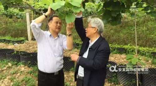 4月16日,植物病理学家、植物病毒学家、农业教育家、中国科学院院士谢联辉带领福建农林大学专家学者莅临安发(古田)生态科技园调研林下经济、猕猴桃栽培等发展情况。安发国际控股集团董事局主席高益槐教授陪同调研。