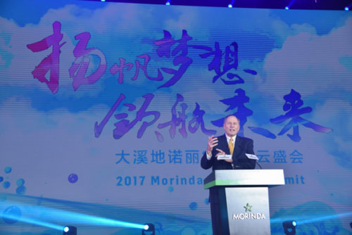 他说,自从1996年公司首次推出大溪地诺丽果汁以来,大溪地诺丽果汁已经成为全球首屈一指的全球液态保健品,并且开启了一个全新的超级水果行业。现在我们中国的诺丽工厂将会生产更多的诺丽产品,我们要把诺丽带给更多的人。显而易见,中国市场蕴含的巨大的潜力,我们将撬动中国市场,帮助中国的消费者们改善他们的健康,帮助年轻一代拥有更美好的未来,让我们的营销人员生活得更加富足,更加快乐。他肯定得说,对中国市场、中国的营销伙伴、对中国的诺丽领袖充满了信心。他说,让我们大胆得走出去,相信我们一定会获得巨大的成功。