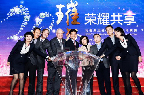 2017年4月2日,庆典大会在武汉隆重举行。武汉市武昌区副区长谢济全、区宣传部部长李蓉、区政协副主席陈鹏南、完美公司总裁胡瑞连、智利驻华大使贺乔治等领导嘉宾,以及来自全国各地的完美经销商代表共同出席了此次盛典。