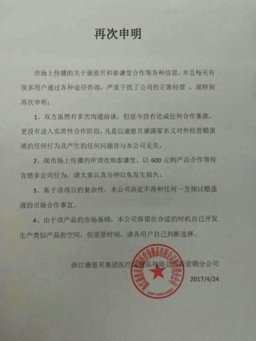 康恩贝再次声明:与泰谦堂未达成任何合作条款