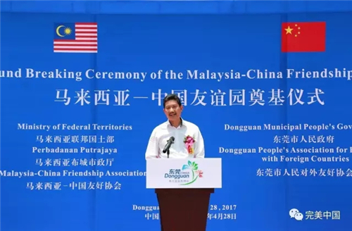 拿督斯里艾德南在致辞中表示,马中友谊源远流长,本次马来西亚在东莞建设“马中友谊园”,不仅是对中国在布城建设“中马友谊园”的致意,更希望以此见证两国深情厚谊,促进两国合作共赢。他衷心感谢东莞市政府的协助,以及主要捐赠企业完美公司的大力支持。