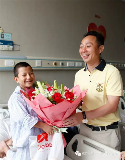 2011年,黄金宝先生看望先心病患儿艾比布拉。