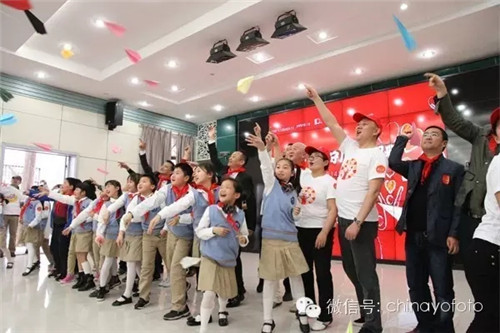 2014年3月,“快乐导师”黄金宝先生,与孩子和志愿者们一起放飞象征着希望的纸飞机。