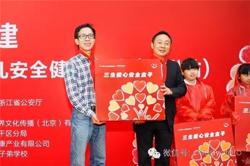 2015年4月在“平安共建-关爱少儿安全健康”活动中黄金宝先生捐赠三生爱心安全盒子。