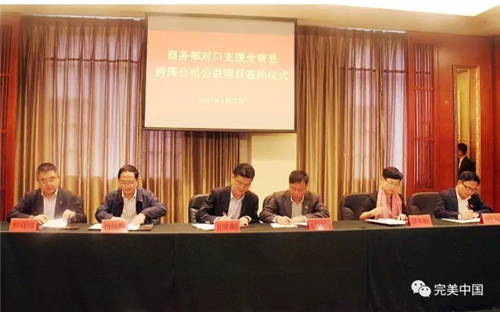4月27日,全南县举行跨国公司公益项目签约仪式,胡瑞连作为企业代表发言,他介绍了完美公司“取之社会,用之社会”的公益理念,以及支持社会公益项目的决心与行动。随后,胡瑞连与全南县教育局局长叶韶华一同签署捐赠协议,并接受全南县政府和中国外商投资企业协会共同颁发的荣誉证书。