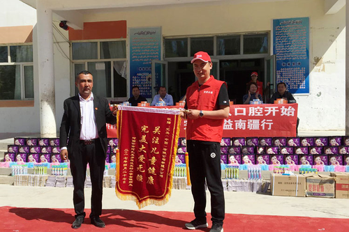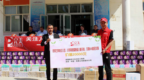 活动当天,新疆分公司携喀什地区7家服务中心及40余名完美爱心人士,带着大家一起捐赠的500套完美爱施蓓儿童牙膏及牙刷、牙杯、各类文具等,价值2万元,怀着满满的爱心奔向库兰其村小学。