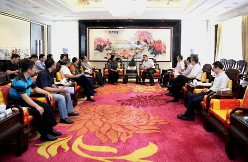 柳州市政协党组书记、政协主席陈虹与康美药业董事长、总经理马兴田座谈。