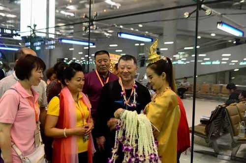 漂亮的泰妹为伙伴们献上花环以示欢迎