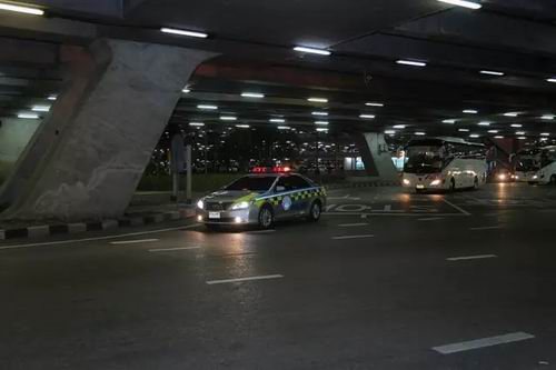 威武的泰国警车为伙伴们保驾护航,前往入住酒店