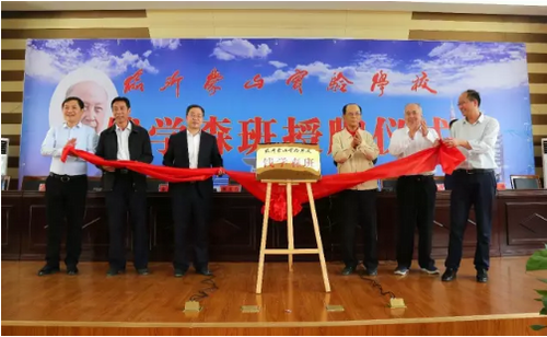 张文台上将、薛惠锋院长、钱永刚主任、王建俊少将、周东开书记、高思圣主任,王宗继董事长等共同为“临沂蒙山实验学校钱学森班”成立揭牌。