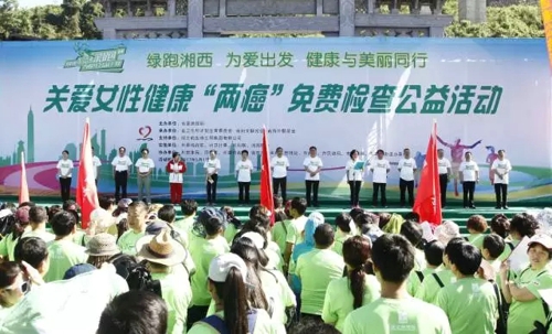 5月13日,由中共湖南省委统战部、湖南省妇女联合会、湖南省卫生和计划生育委员会、湖南省海外联谊会、中共湘西自治州委统战部、湘西自治州妇女联合会、湘西自治州卫生和计划生育委员会、湘西自治州海外联谊会以及绿之韵集团联合开展的“关爱女性健康‘两癌’免费检查暨绿跑公益活动”在湘西自治州吉首市举行。绿跑(湘西站)每一名在设定时间内坚持跑完全程的选手,绿之韵公益基金会都将为他们代捐一笔慈善款,而这笔款项将全部用于关爱女性公益项目。这次,绿之韵集团与省委统战部、省卫计委、省妇联、省海联会组织对湘西、怀化、益阳三个市州的城区城镇低保已婚妇女,开展3万例“两癌”免费检查,彰显了绿之韵集团的社会责任感和乐于奉献爱心的情怀。