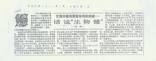 当时,由广东体育医院监制的“生物健”开始在东莞市黄江保健品厂批量投产,六届全运会广东体育代表团第一批订购2万支,很快就被尝试过多种营养剂的运动员取用一空,六届全运会闭幕前,广东健儿总共使用了10万支以上。