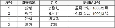 5月16日,商务部直销行业管理信息系统发布圣原健康产业有限公司调整直销培训员备案信息。圣原此次调整,新增直销培训员2人,注销2人,详情如下: