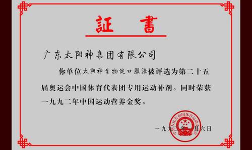 太阳神生物健作为中国运动员专用补剂