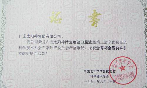 1992年,金寿杯金质奖