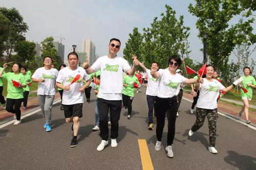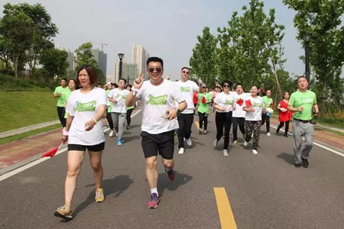 随着一声清脆的发令枪声,18大方阵2000多名绿跑爱好者如离弦之箭冲出起跑线。参与跑步的人群中有星光熠熠的世界冠军、体育健将,也有健康跑爱好者;有年近六旬的老人,也有天真烂漫的孩子;有来自长沙周边热心市民,也有从全国各地远道而来的绿之韵爱心志愿者,身着绿色T恤的他们在阳光的照射下显得格外的青春洋溢。一位热心跑友在镜头前兴奋不已:“为了这次五公里‘绿跑’,我提前准备了很久,真正参加之后觉得跑步还是其次,做公益为爱奔跑才最重要,为‘绿跑’点赞!”世界蹦床冠军罗丹在“绿跑”活动现场表示,绿跑既起到了倡导全民健身的作用,还号召大家用实际行动支持公益,值得参与!