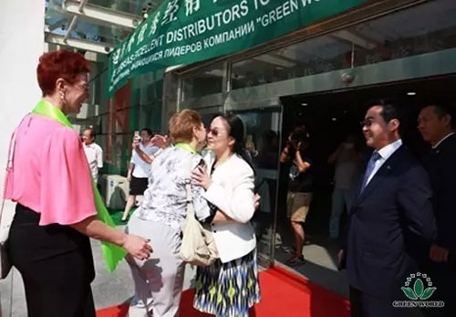 高亢激昂的绿世界司歌响彻绿世界厂区,来自海外的优秀经销商们精神振奋、意气风发昂首阔步踏上红地毯走进天津基地,回家的喜悦冲淡了每一位经销商长途跋涉的疲劳,再次的相聚拉近了彼此之间的浓情,热情洋溢的氛围让所有人感受到了家的温馨。