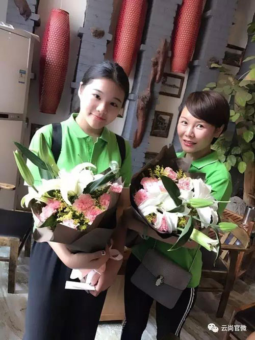 孩子们为小玲妈妈和云尚广西区域总监蔡徐君女士送上了感恩的鲜花。