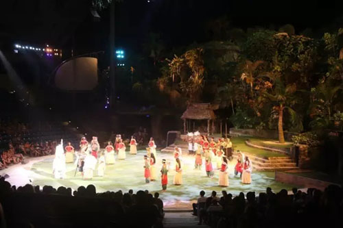 在文化中心,有各种具有民族特色的活动吸引着游人。汤加村里,婀娜多姿、秀发披肩的少女表演桑皮服装制作的全过程;在夏威夷村,颈上带着夏威夷花环的妇女,缝制衣服,编结织品,展销她们自己制作的手工艺品;萨摩亚村中,体格健壮、举止轻捷的男青年,表演攀登椰树、采摘椰子的高超技艺......