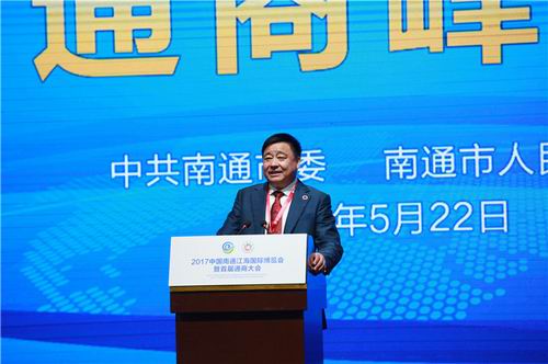 5月22日上午,2017年中国南通江海国际博览会暨首届通商大会在南通市体育会展中心隆重开幕,海内外通商及知名人士聚首家乡,畅叙友谊,共话发展,800多位嘉宾应邀出席。