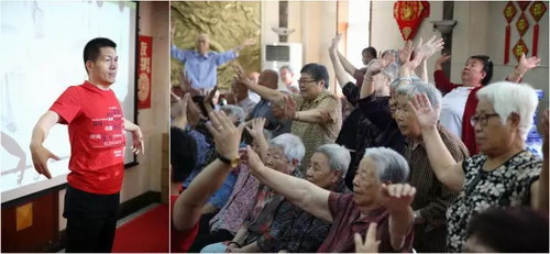 在文艺演出环节,天狮外籍员工表演的相声逗得大家合不拢嘴。泰济生医院独创的健身操“六段情”引起了老人们的极大兴趣,在爱心志愿者带领下,大家伸展身体,学习得十分投入。老人们还争相上台表演,秀出自己的活力和风采。