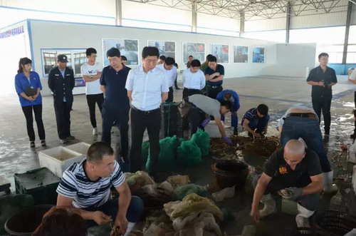 19日下午,省政协常委、济南军区空军原副司令员吴辉建带领中共、特邀界委员考察团一行15人,在市长刘昌松、市政协主席战大海、市政协副主席张积聚的陪同下,来到好当家集团考察海洋牧场建设和渔业转型升级工作,镇党委书记王树恒、镇长王曙光陪同考察。考察团一行先后实地察看了海普盾海洋生物科技、海洋博物馆和海珍品交易中心,听取了唐传勤董事长的介绍。