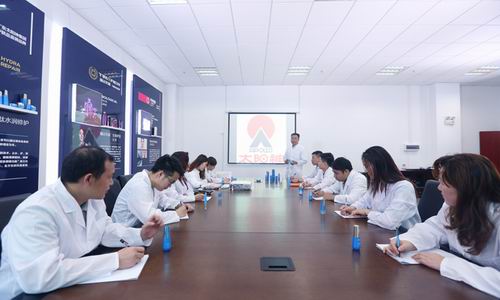 穿过文化墙,我们来到了颇具学术气息的雅丽化妆品生产厂会议室