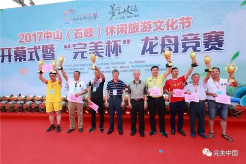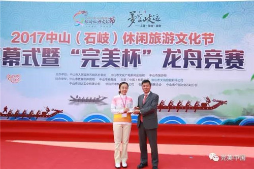 5月28日上午,2017中山(石岐)休闲旅游文化节开幕式暨“完美杯”龙舟竞赛精彩呈现。完美(中国)有限公司再次捐赠200万元,冠名支持这一传统民俗文化盛事。古润金董事长现场观赛,并为获奖队伍颁奖。