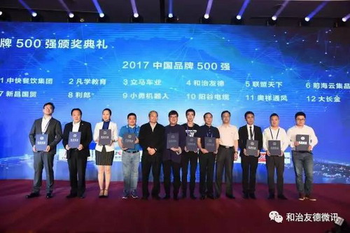 和治友德荣登2017年中国品牌500强荣耀榜