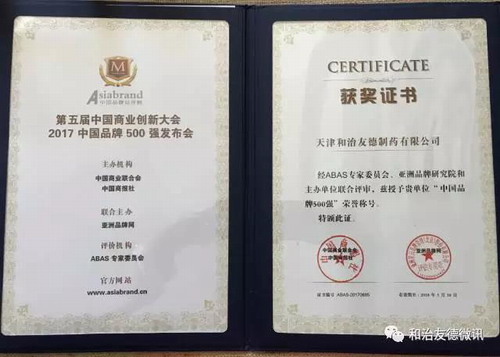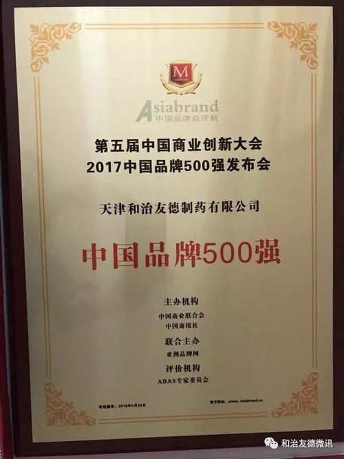和治友德荣获“2017中国品牌500强”重要奖项,及“亚洲品牌理事会会员单位”称号