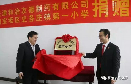 在成功开拓全球72个国家和地区的养生事业之后,和治友德心系祖国,不忘初心,决心启动中国市场的那一刻,公益事业与公司发展共同前进。2013年向天津宝坻老区捐助20万元,建设“和治友德希望小学”;2016年6月,向天津市静海区陈官屯胡兴庄捐款20万元人民币,用于建设“希望幼儿园”……