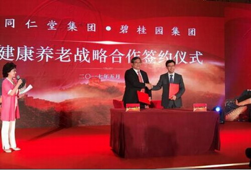 2017年5月26日,碧桂园集团作为唯一一个房地产开发商,与同仁堂集团在北京正式签订健康养老战略合作协议。北京市老龄产业协会会长(原北京市常务副市长)翟鸿祥、同仁堂集团董事长梅群先生、碧桂园集团首席战略官林昭宪先生、碧桂园集团健康医疗事业部总经理朱宝森先生等领导出席了签约仪式。