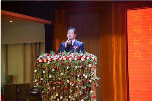 李晓华主席在于爱东董事长和于城总裁的陪同下步入百合大厅会场