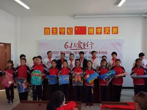 活动现场,来自康美的爱心业务伙伴,分批次为红旗小学196名孩子派发公益保险卡,并捐助学习用品、体育用品、健康食品等物资共计20000元。