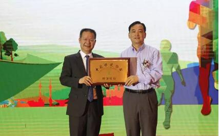 中国保健协会副理事长王钟向绿之韵生态授予“中国保健协会会员单位”牌匾