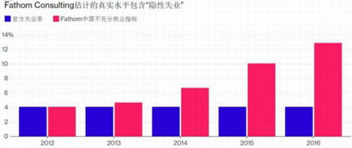 近年来,我国失业率居高不下,根据Fathom Consulting的最新报告显示,2016年中国城镇失业率高达12.9%(包含隐性失业),此数据是Fathom机构统计的中国不充分就业指标,相比2012年的统计数据以来已上升两倍。