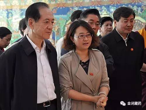 2017年6月7日,全国政协副主席韩启德率考察团一行31人视察金诃藏药青海基地。执行总裁牛豫娟、副总裁俞瑞华陪同视察。