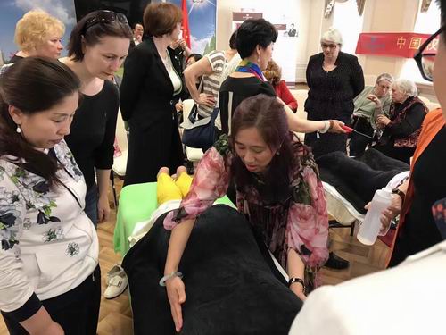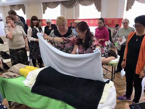 权健人推广的不仅是一项大爱的事业,更是中医文化的薪火传播者。当日,有一位77岁俄罗斯女士,腿关节曾经受过伤,一碰就疼,膝盖部位始终是肿的,走路需要拄拐。参加了第一天的项目说明会后,对一德系统创始人张老师所分享的火疗功效萌发了浓厚的兴趣,积极报名想亲自尝试一次。通过第一次火疗体验,老人家就一直说很舒服,结束后感觉疼痛有了明显的缓解,拉着权健火疗老师的手哭着说:感谢你们!感谢中国人!我爱你们……