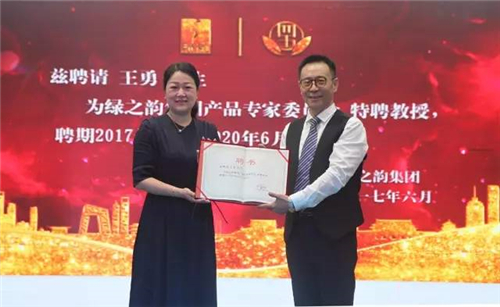 绿之韵集团董事、总裁劳嘉为绿之韵产品专家委员会特聘教授王勇颁发聘书
